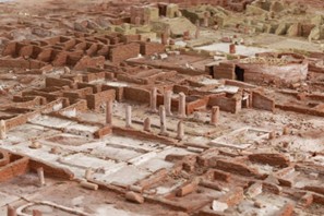 Ostia Antica (détail et vue d’ensemble), Anne et Patrick Poirier, 1970-1972, maquette en terre cuite, 6 m x 12 m. © Anne et Patrick Poirier/ Photographe Aurélien Mole. https://mrac.laregion.fr/La-memoire-en-filigrane-Anne-et-Patrick-Poirier