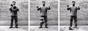 Ai Weiwei, Dropping a Han-Dynasty Urn, 1995, Three gelatin silver prints, 148 x 121 cm each . © Ai Weiwei : https://smarthistory.org/ai-weiwei-dropping-a-han-dynasty-urn/