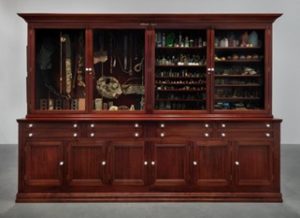 C’est dans une démarche similaire que nous pouvons appréhender l’œuvre de Mark Dion et en particulier sa création réalisée à partir d’une collecte d’objets sur les bords de la Tamise à Londres. Les restes matériels exhumés sont divers, des pipes d’argile, des jouets en plastique, mais également des découvertes plus étonnantes tel que des fragments de poterie bellarmine ou une bouteille contenant une lettre en caractères arabes. Les bénévoles et spécialistes de cette opération ont lavé et identifié les découvertes à la manière d’un travail de post-fouille. Cette impulsion de l’artiste Mark Dion a par ailleurs été une nouvelle source de connaissance des environs de la Tamise. Finalement, l’ensemble des découvertes est exposé et valorisé dans un meuble de type wunderkammer, cabinet de curiosité. Cette présentation, graphique et artistique, juxtapose dans un même meuble des objets contemporains plastiques sans valeur avec des fragments d’os et des curiosités non identifiées.