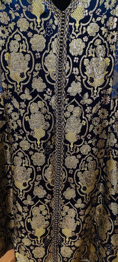Cette fois-ci, le vêtement est étudié au travers de l’un de ses matériaux les plus précieux: l’or. Quelques mois auparavant, fin 2024, le musée Guimet avait déjà étudié ce précieux métal dans son exposition L’Or des Ming avec la présentation de pièces de vaisselle et de parures. Ici, c’est au tour du MQB de mettre en avant ce matériau au travers de ses riches collections de textiles, en collaboration avec la créatrice de mode chinoise Guo Pei. Hana Al Banna-Chidiac, ancienne responsable des collections Afrique du Nord & Moyen-Orient au MQB et Magali An Berthon, professeure assistante en Fashion Studies de l’American University of Paris, et membre associée du Centre for Textile Research de l’Université de Copenhague, sont les commissaires de cette exposition.