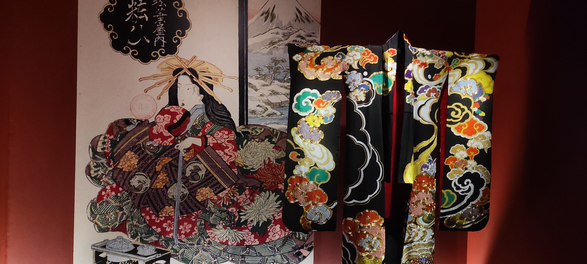 Par ailleurs, les textiles sont accompagnés de peintures et d’œuvres imprimées sur les kakemono comme support iconographique. La vidéo complète cette médiation avec des animations sur l’histoire de certains vêtements comme la robe de mariée tunisienne. Elle reste surtout employée pour expliquer certaines techniques de broderie et des méthodes de filages.