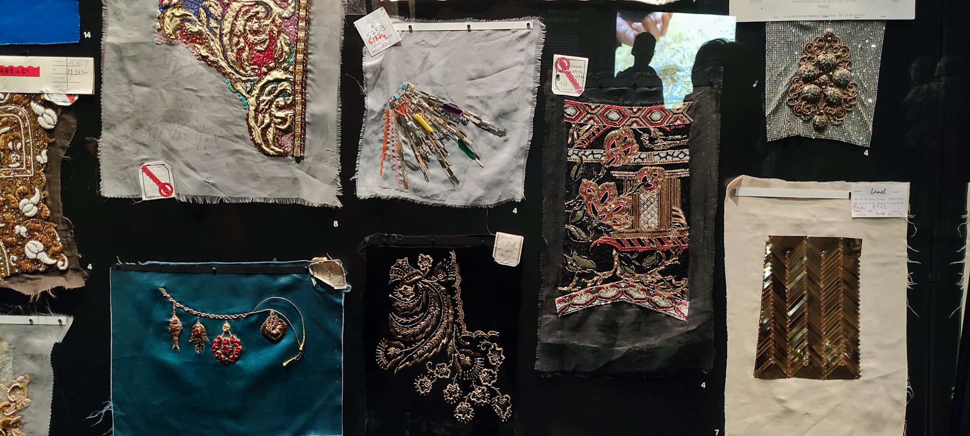 De plus, ce voyage est ponctué de “bulles thématiques”. Ces petits espaces se penchent sur des matériaux pour le moins atypiques, pouvant être confondus avec de l’or : la soie marine ou “laine de mer” correspondant aux filaments d’un coquillage marin (pinna nobilis), la soie de néphiles et enfin la soie dorée du Cambodge. Après avoir fait son tour du monde des textiles, le visiteur retrouve la France dans une section intitulée la “magnificence de la broderie française”. Celle-ci expose les nombreux échantillons de broderie de la Maison Lesage qui agrémente les créations des grands noms de la haute couture française comme Chanel, Givenchy, Jean-Paul Gaultier ou encore Yves Saint-Laurent.