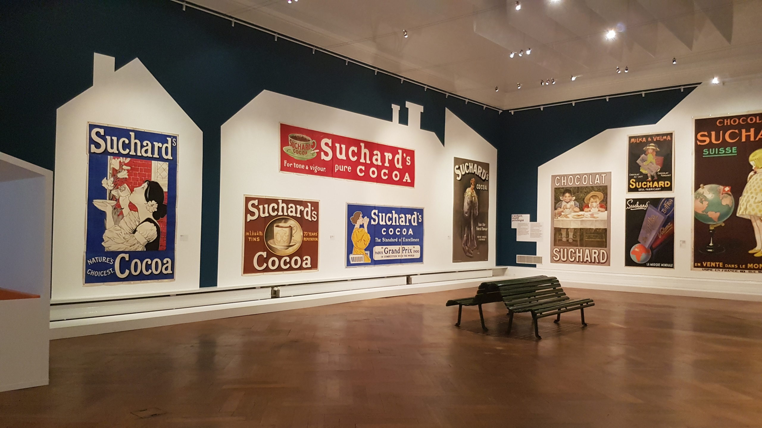 Dès ma rentrée à l’Université, je pousse les portes du premier musée qui croise ma route : celui d’Art et d’Histoire de Neuchâtel. Au bord du lac, retrouver un musée est comme pénétrer dans une maison que l’on reconnaît avec chaleur et réconfort tout en ayant le cœur palpitant à l’idée de découvrir de nouveaux trésors visibles nulle part ailleurs. Un panneau attire derechef mon regard en haut du splendide escalier d’honneur : « Choc ! Suchard fait sa pub ! ». Une exposition ! Quelle bonne idée de commencer ma vie d’apprentie muséologue voyageuse ainsi ! Je pénètre alors dans l’aile ouest, attirée par ces images de chocolat un peu partout… Je me pose alors cette terrible question : nos clichés étrangers sur la Suisse seraient-ils donc fondés ? Comment sont-ils nés et pourquoi sont-ils si tenaces encore dans nos esprits ? J’erre médusée entre les panneaux de l’exposition, le ventre gargouillant à moitié (c’est cela d’être gourmande) et les yeux brillants de curiosité. Deux cents affiches se placardent partout pour cent soixante-dix années d’industrie chocolatière. Suchard, Milka, Toblerone…Miam !